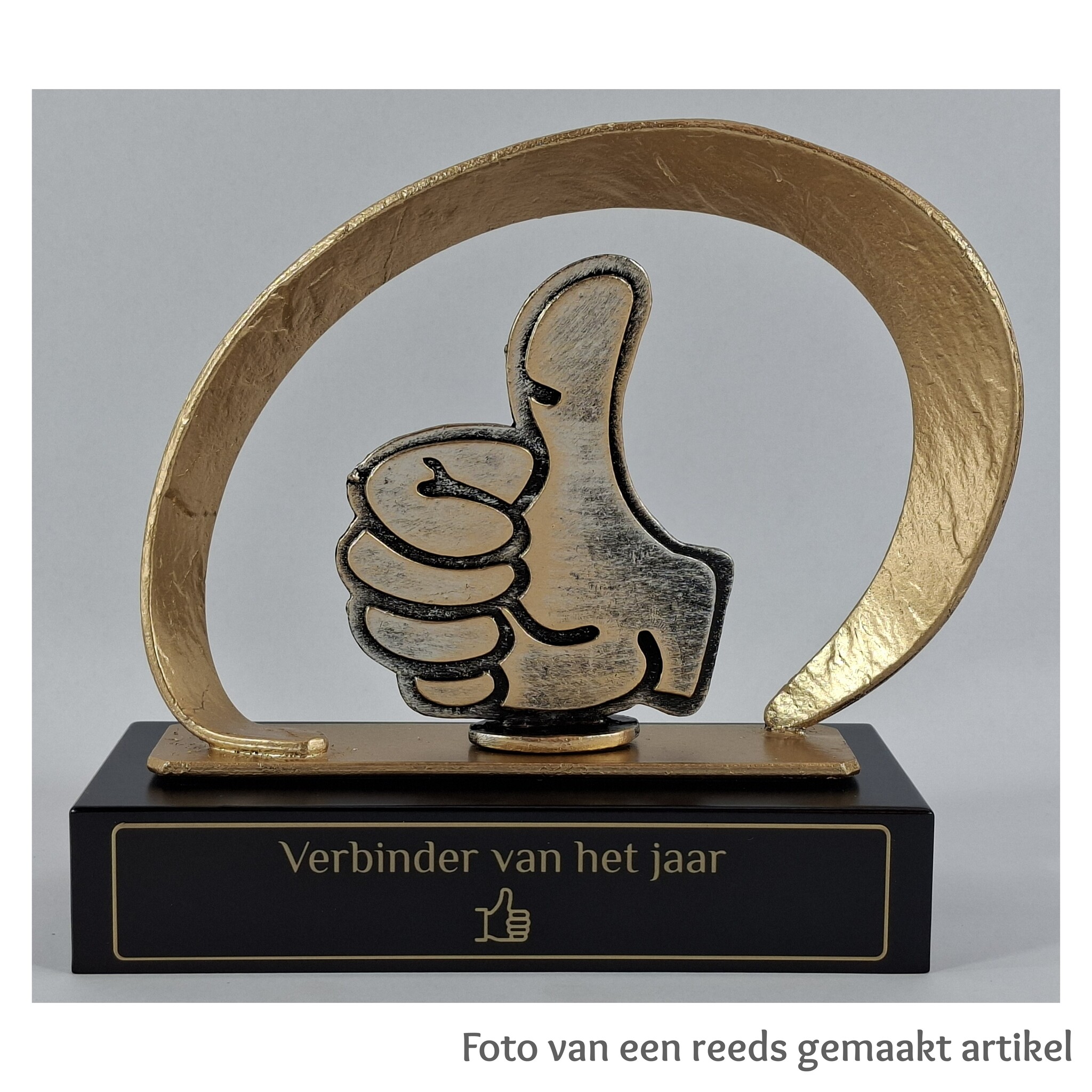 Award van gegoten metaal met gravering; dikke duim 210x80x205mm