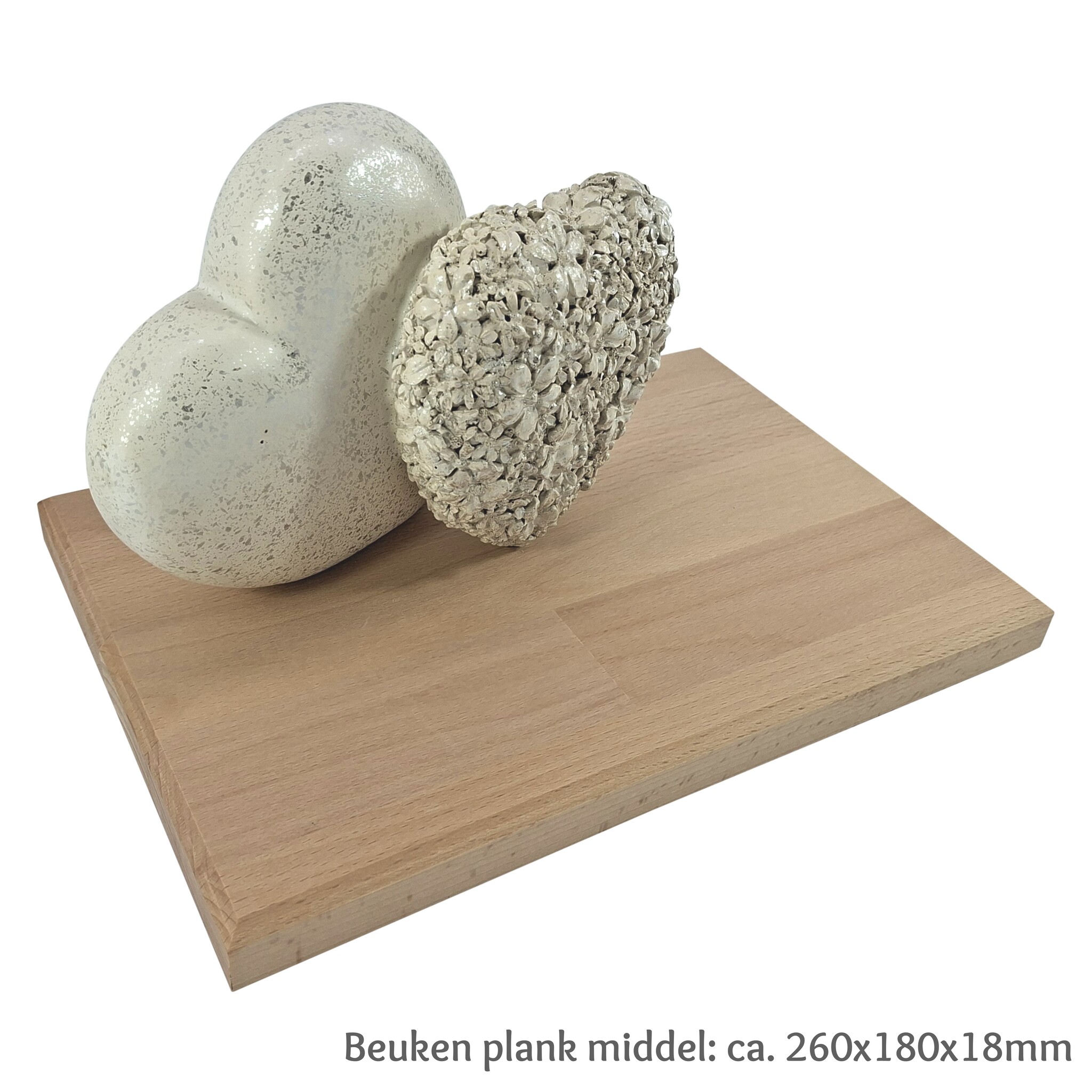 Dit beeld van kunsthars met 2 harten, gepresenteerd op een beuken plank en prachtig gegraveerd, symboliseert liefde en verbondenheid. Een warm en tijdloos cadeau om uw gevoelens tastbaar te maken. Lees meer