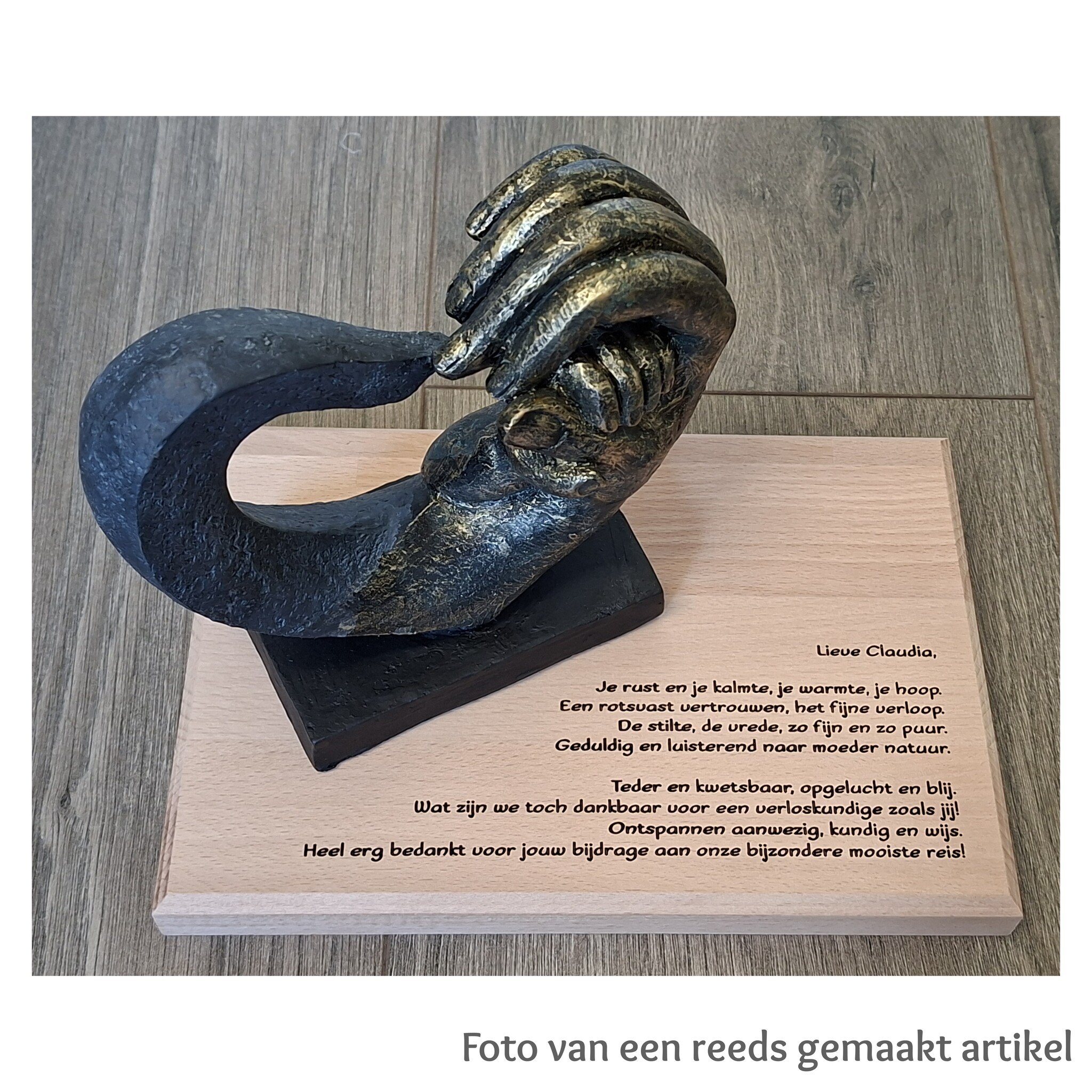 Een liefdevol beeld van een kinderhand en hart, geplaatst op een beuken plank. Met een gravering maakt u het persoonlijk en bijzonder – een blijvende herinnering vol warmte en liefde. Lees meer