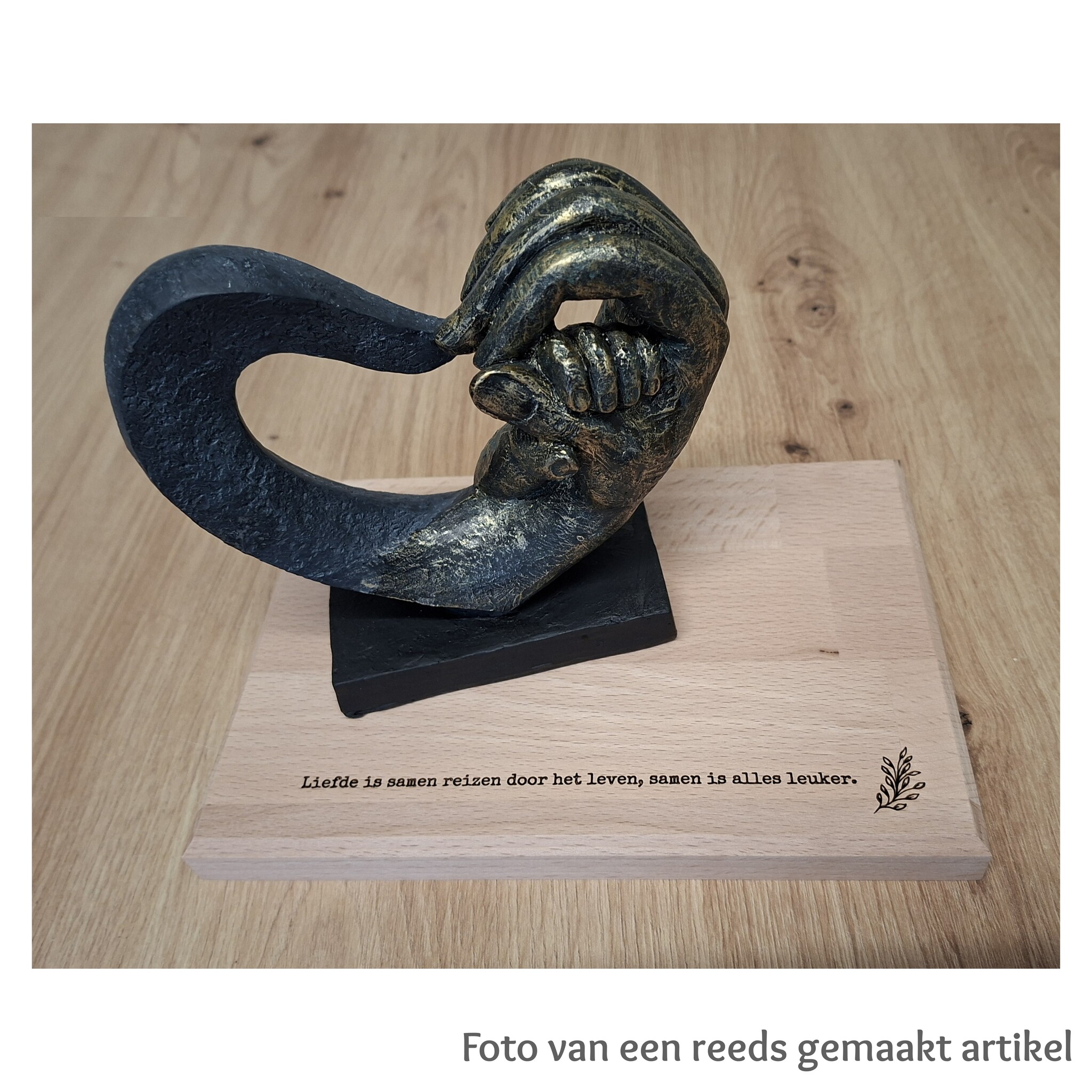 Dit prachtige beeld van een kinderhand en hart op een beuken plank straalt warmte en liefde uit. Door een persoonlijke gravering toe te voegen, creëert u een uniek en dierbaar aandenken dat voor altijd gekoesterd zal worden. Perfect als betekenisvol cadeau voor familie of uzelf, en een subtiel symbool van verbondenheid in elk interieur.