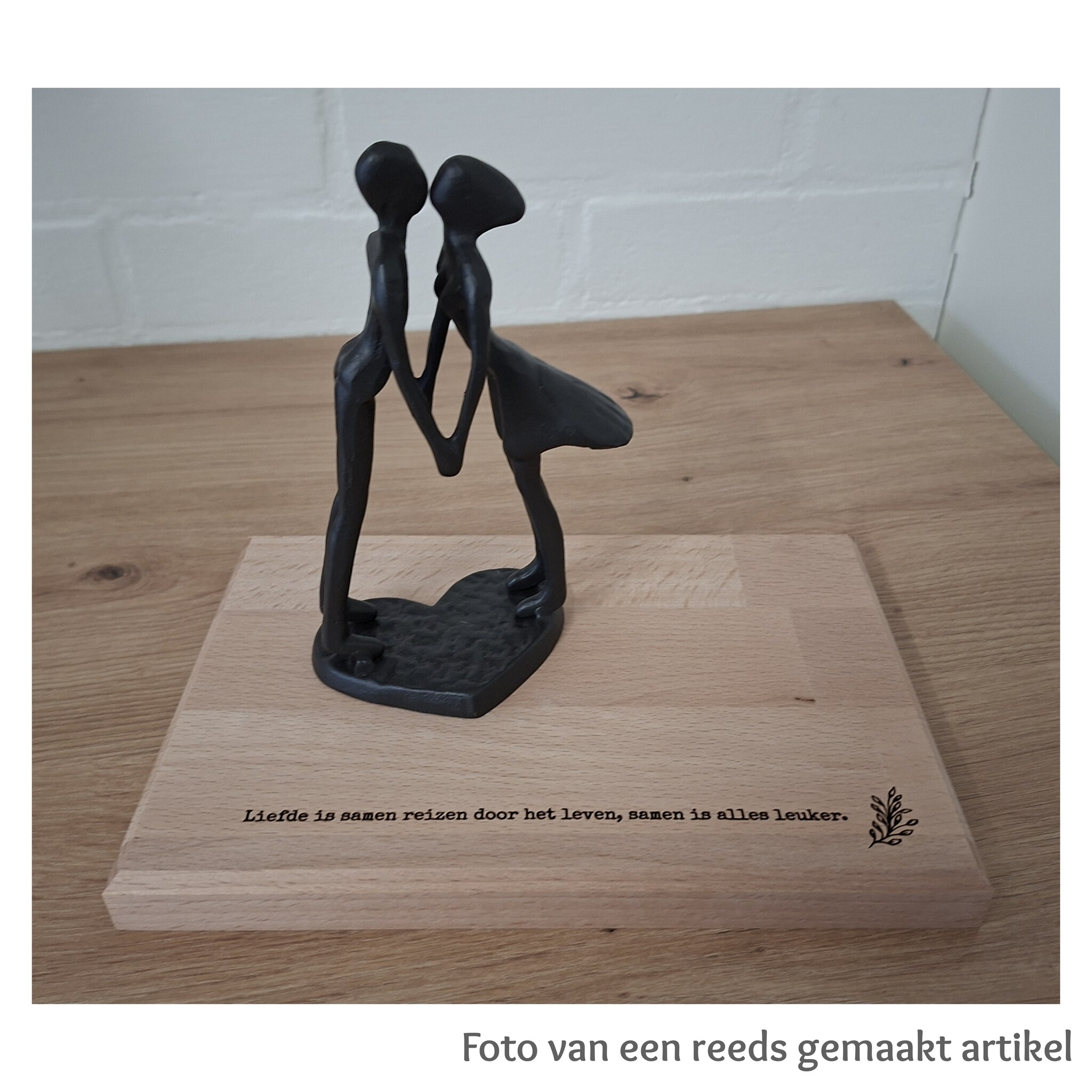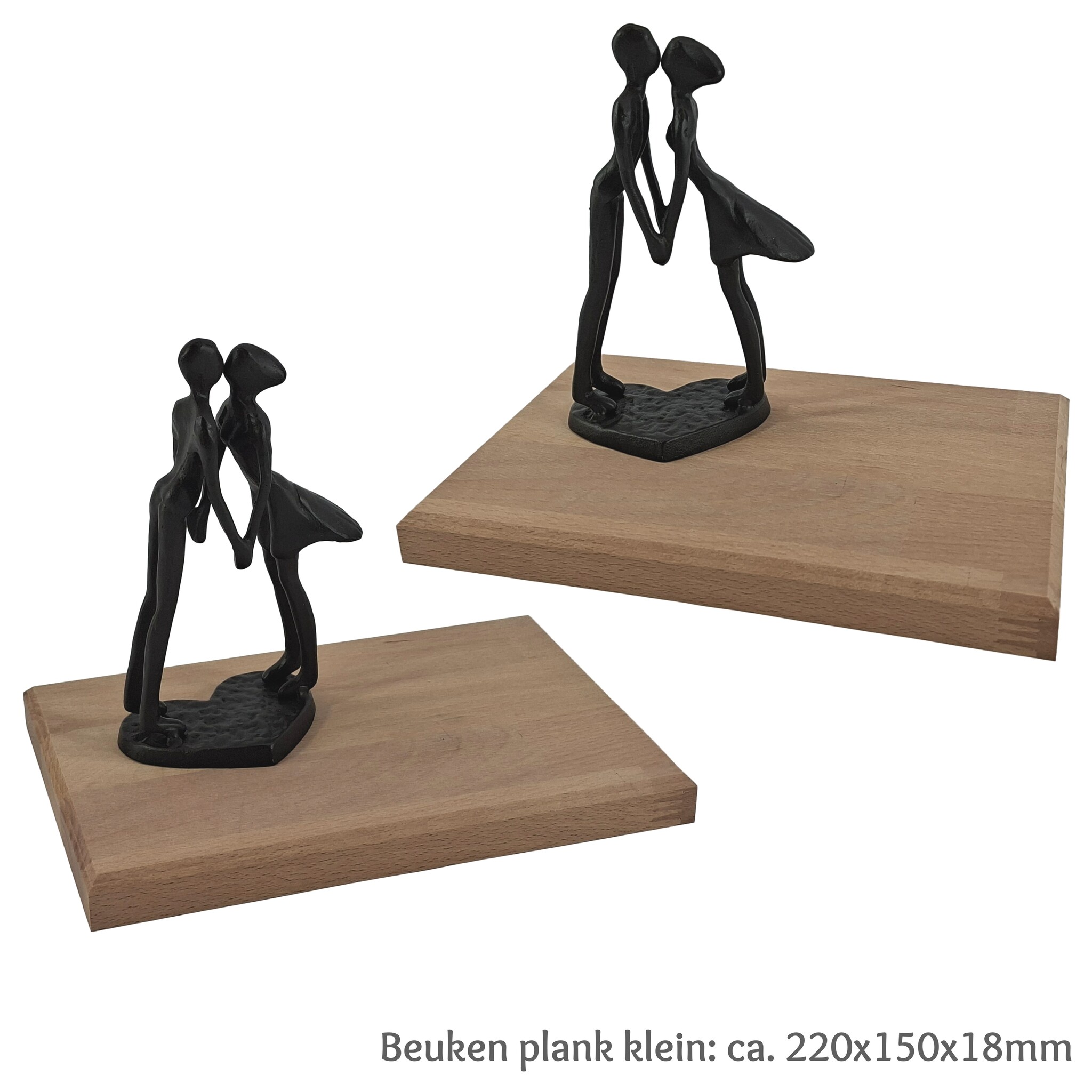 Beeld: kussend paar met beuken plank