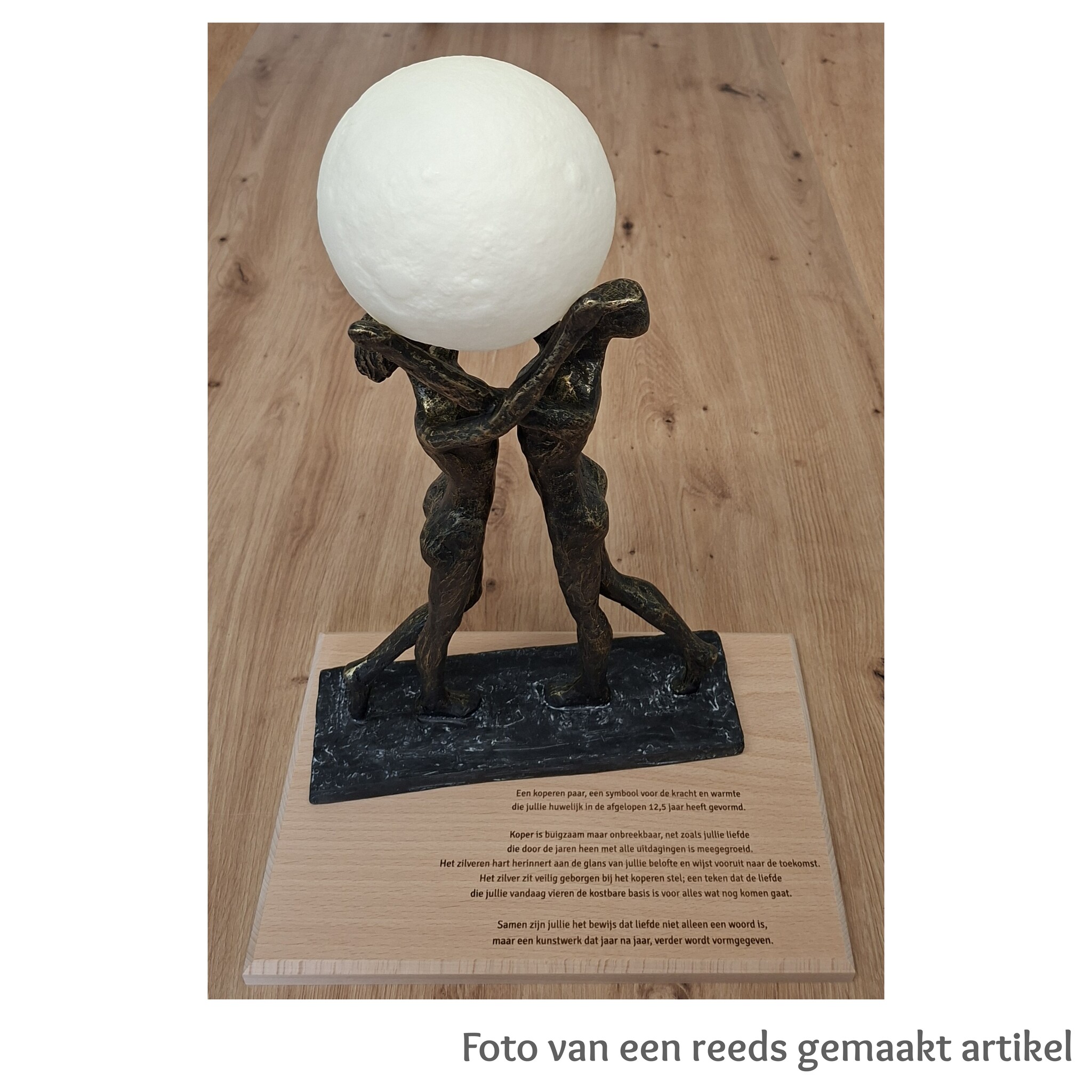 Deze sfeervolle led-lamp combineert een koppel met een stralende lichtbol, allemaal gepresenteerd op een natuurlijke beuken plank met een prachtige gravure. Het kunstwerk brengt warmte en gezelligheid in elk interieur en symboliseert liefde en verbondenheid. Ideaal als persoonlijk cadeau of sfeervolle decoratie voor speciale momenten. Een tijdloos en stijlvol accent dat licht en emotie samenbrengt.
