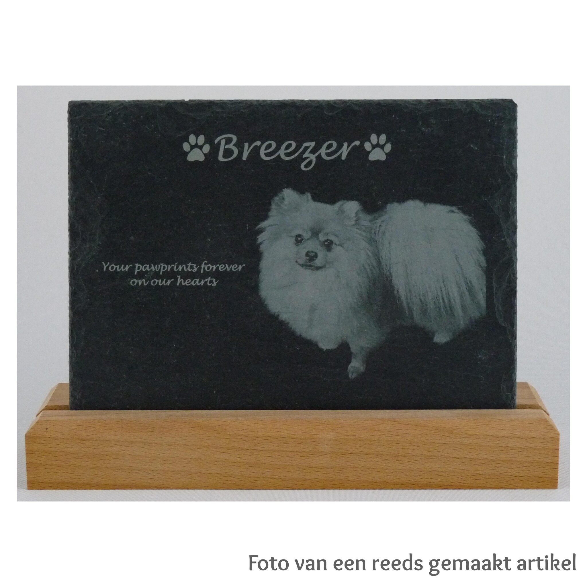 20x15cm. Bord / plaat van leisteen, inclusief houten standaard. Deze leisteen kunnen wij met onze machine lasergraveren met gewenste foto, tekst of afbeelding. Lees meer