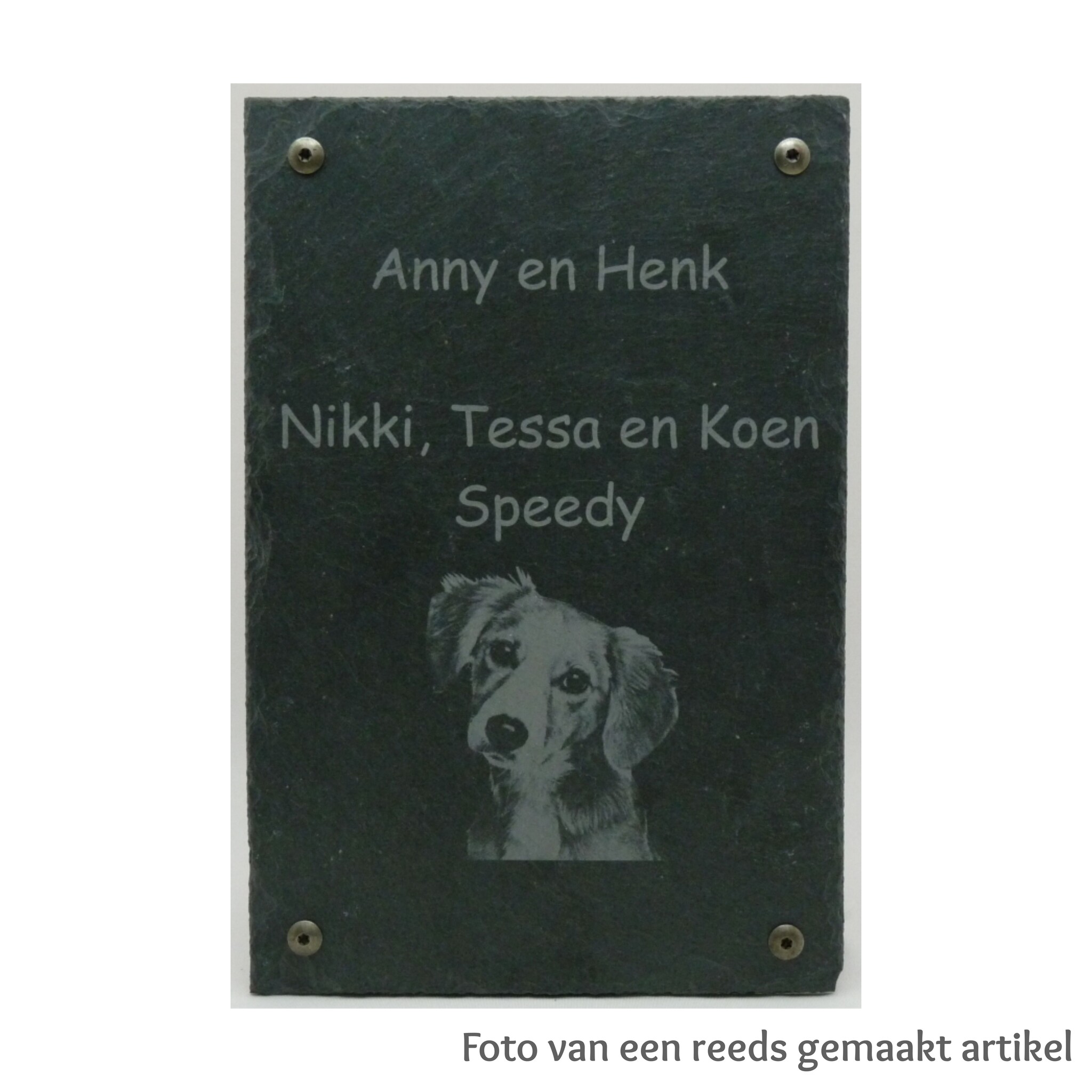 Mooi compleet naambord van leisteen. Laat uw eigen tekst, foto en/of afbeelding graveren tot een origineel en persoonlijk naambord. Lees meer