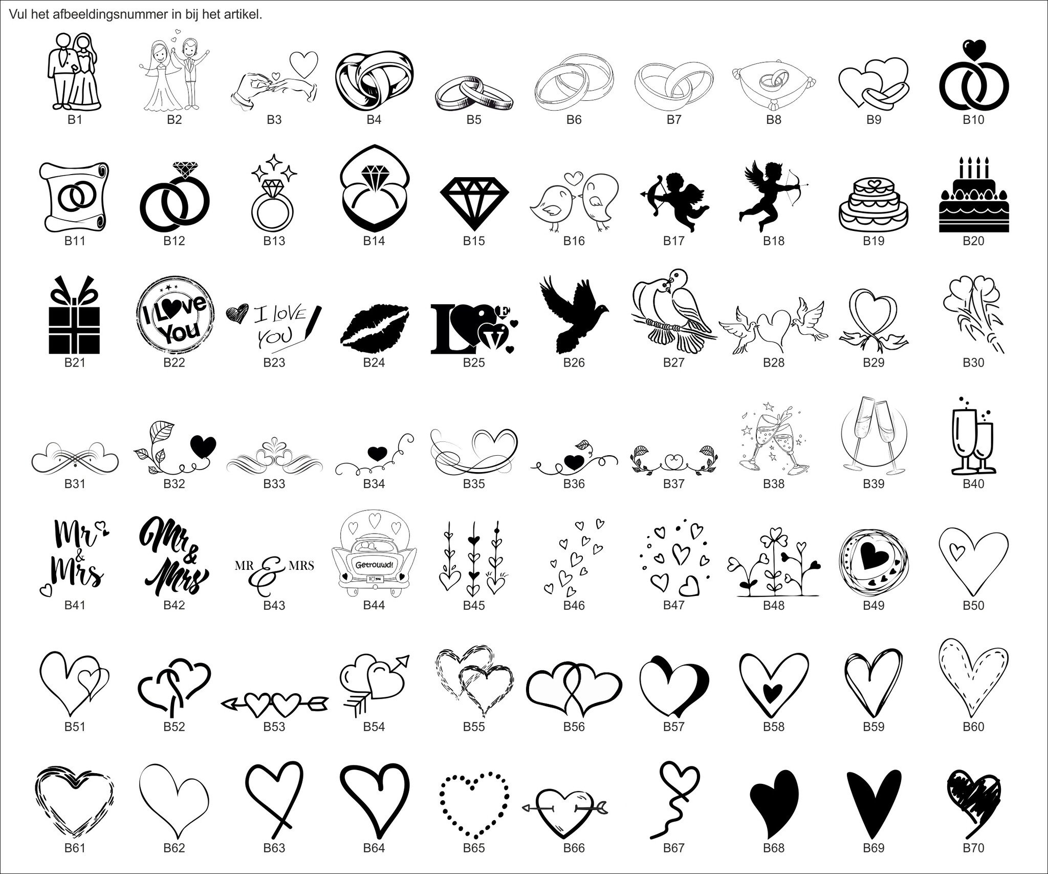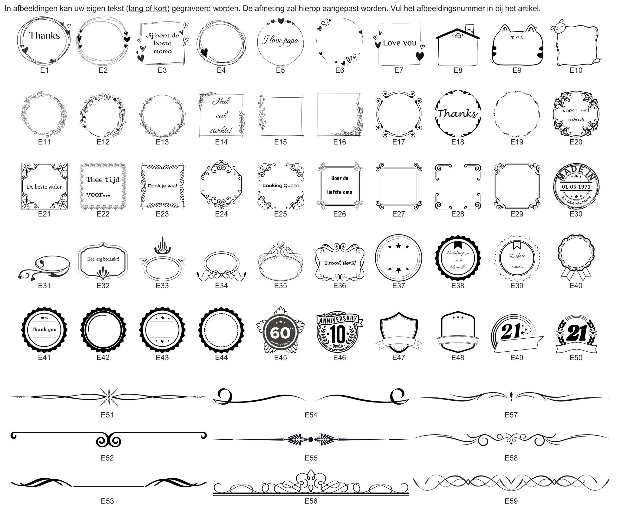 - Alle prijzen zijn incl. artikel, ontwerp en gravure