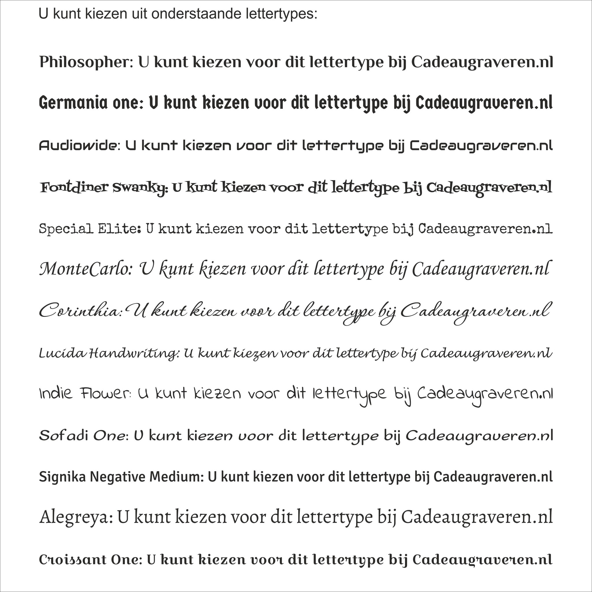 - Alle prijzen zijn incl. artikel, ontwerp en gravure
